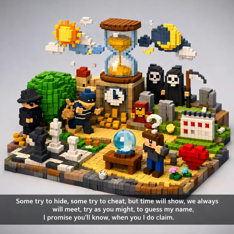 Some try to hide, some try to cheat, but time will show, we always will meet, try as you might, to guess my name, I promise you'll know, when you I do claim.