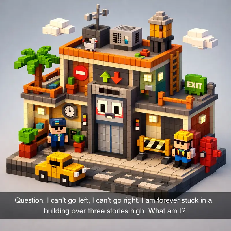 Question: I can't go left, I can't go right. I am forever stuck in a building over three stories high. What am I?