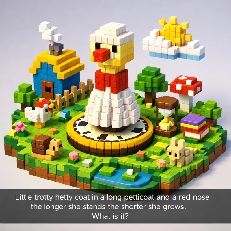 Little trotty hetty coat in a long petticoat and a red nose the longer she stands the shorter she grows. What is it?
