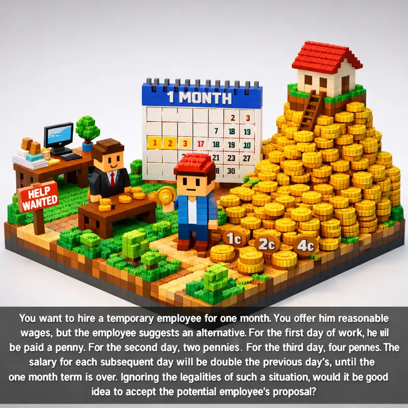 You want to hire a temporary employee for one month. You offer him reasonable wages, but the employee suggests an alternative. For the first day of work, he wil...