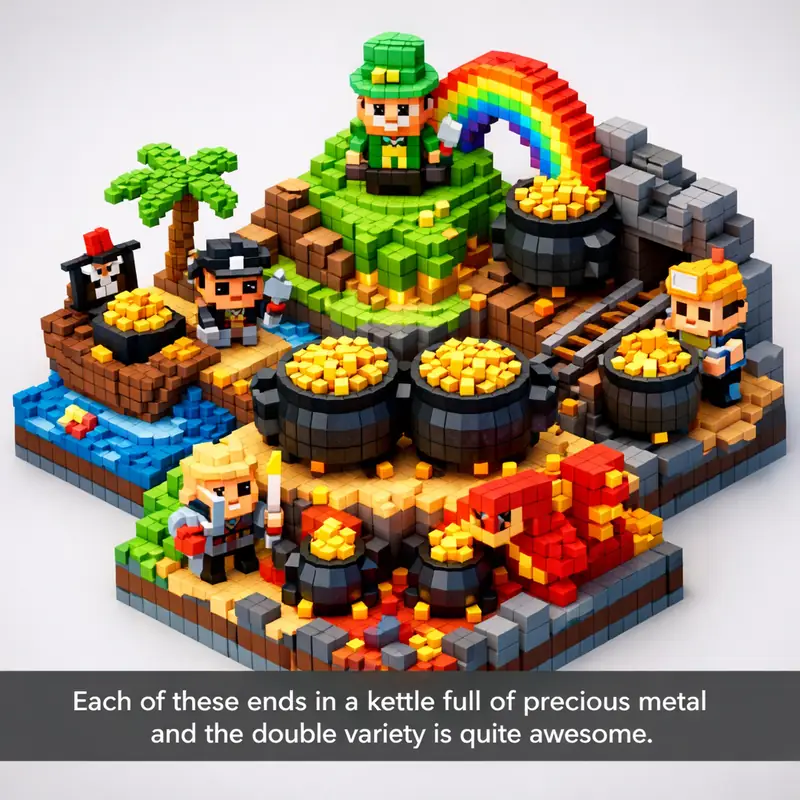 Each of these ends in a kettle full of precious metal and the double variety is quite awesome.