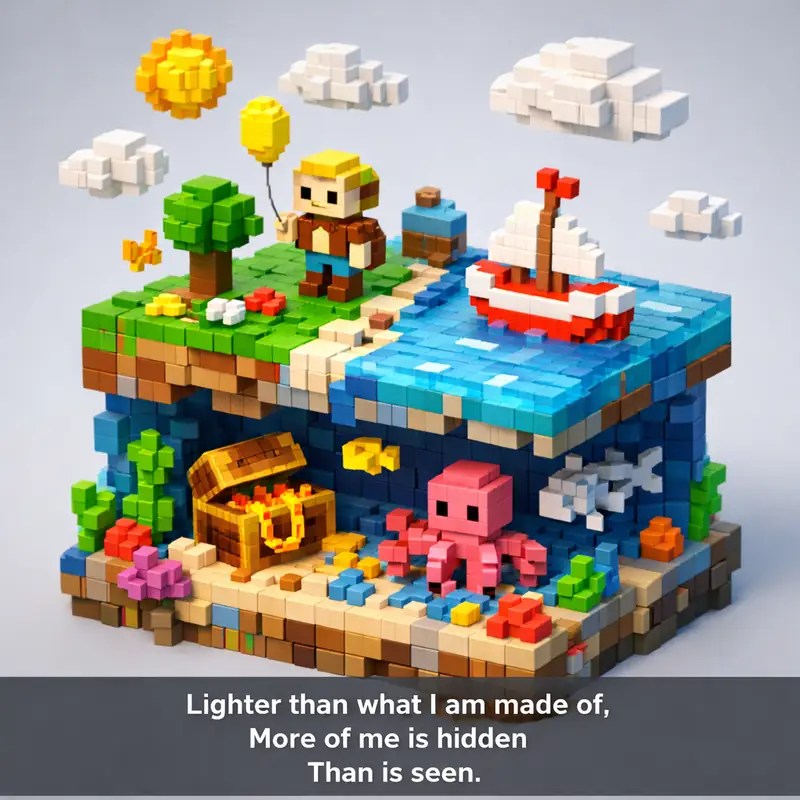 Lighter than what I am made of, More of me is hidden Than is seen.
