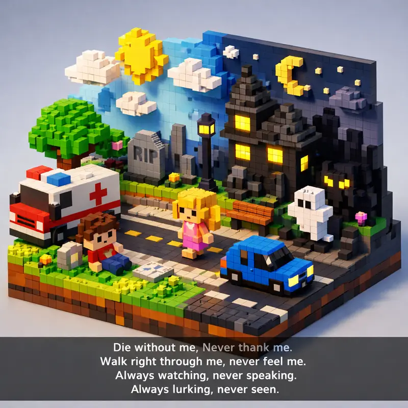 Die without me, Never thank me. Walk right through me, never feel me. Always watching, never speaking. Always lurking, never seen.