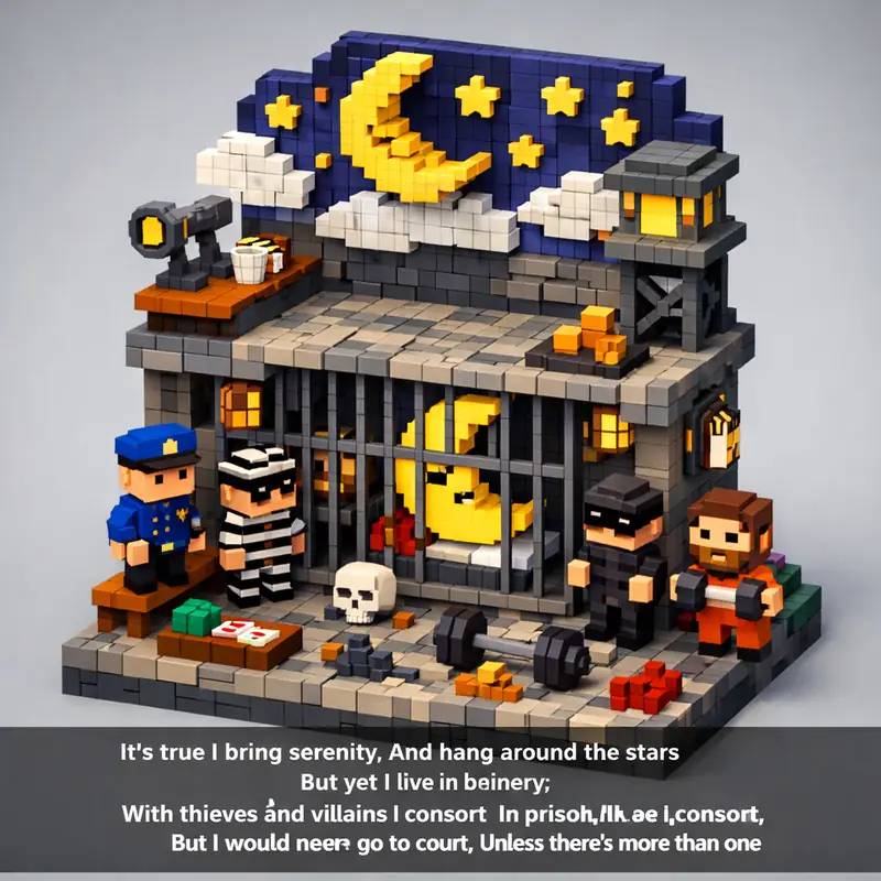 It's true I bring serenity, And hang around the stars But yet I live in misery; You'll find me behind bars With thieves and villains I consort In prison I'll be...