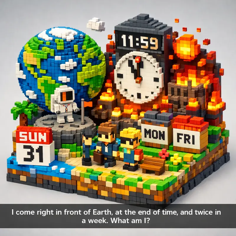 I come right in front of Earth, at the end of time, and twice in a week. What am I?