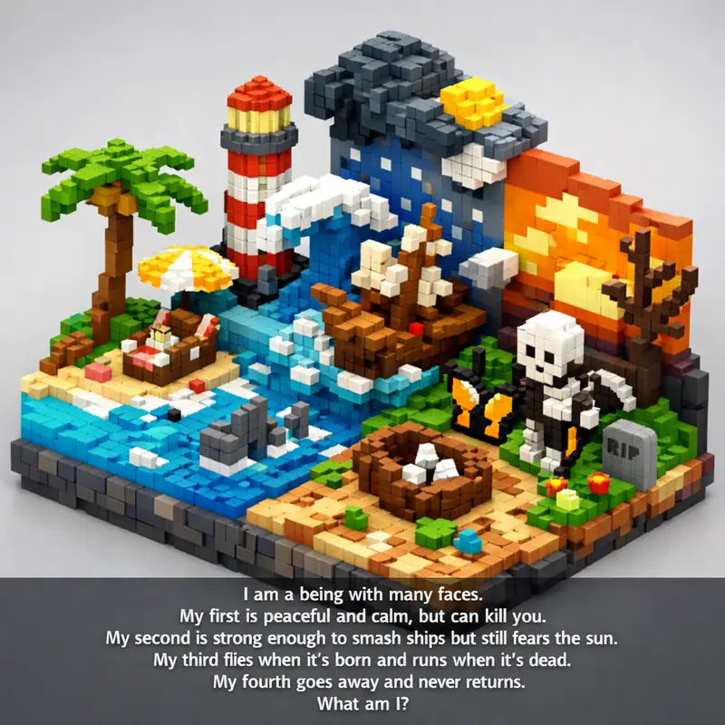 I am a being with many faces. My first is peaceful and calm, but can kill you. My second is strong enough to smash ships but sti...
