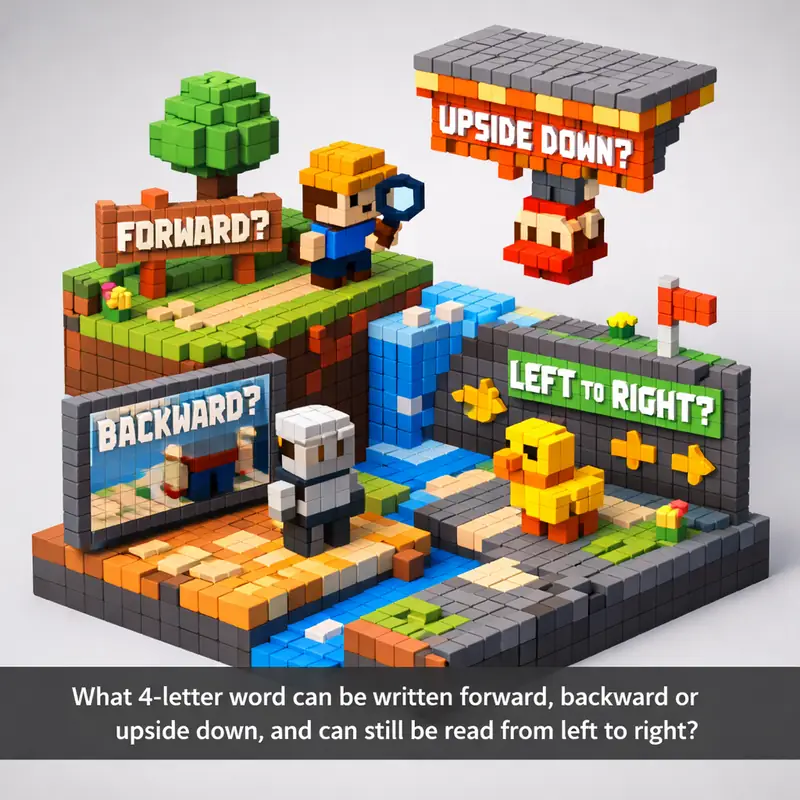 What 4-letter word can be written forward, backward or upside down, and can still be read from left to right?