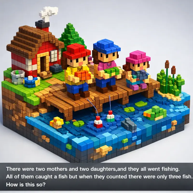 There were two mothers and two daughters,and they all went fishing. All of them caught a fish but when they counted there were onl...
