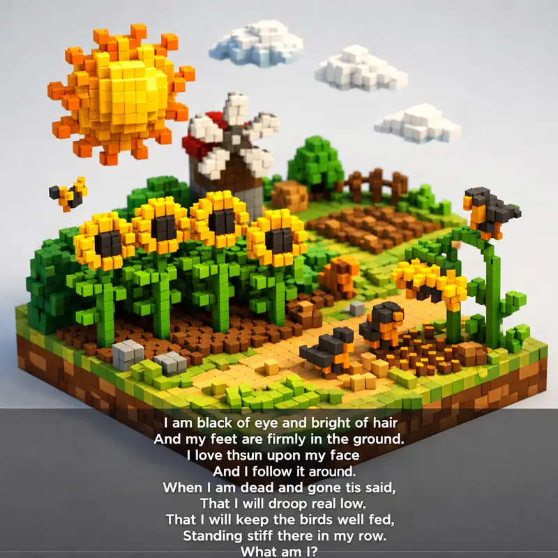 I am black of eye and bright of hair And my feet are firmly in the ground. I love the sun upon my face And I follow it around. When I am dea...