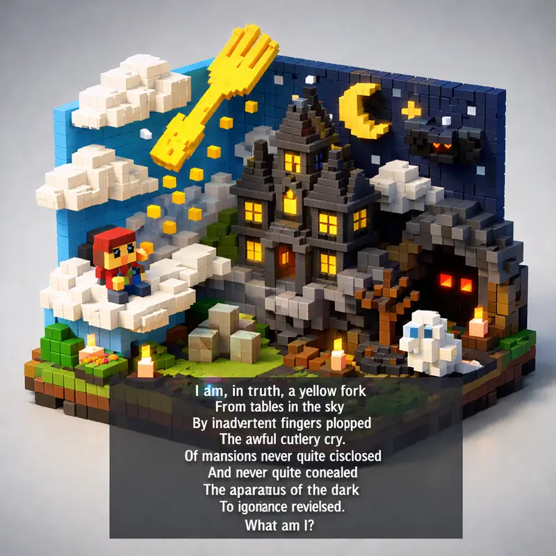 I am, in truth, a yellow fork From tables in the sky By inadvertent fingers dropped The awful cutlery cry. Of mansions never quite disclosed...