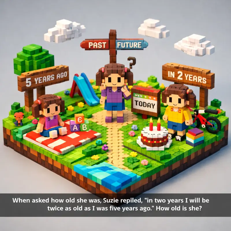 When asked how old she was, Suzie replied, "in two years I will be twice as old as I was five years ago." How old is she?