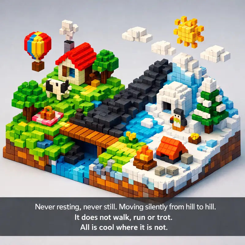 Never resting, never still. Moving silently from hill to hill. It does not walk, run or trot. All is cool where it is not.