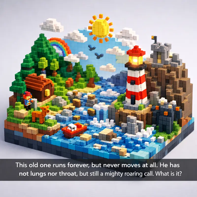 This old one runs forever, but never moves at all. He has not lungs nor throat, but still a mighty roaring call. What is it?
