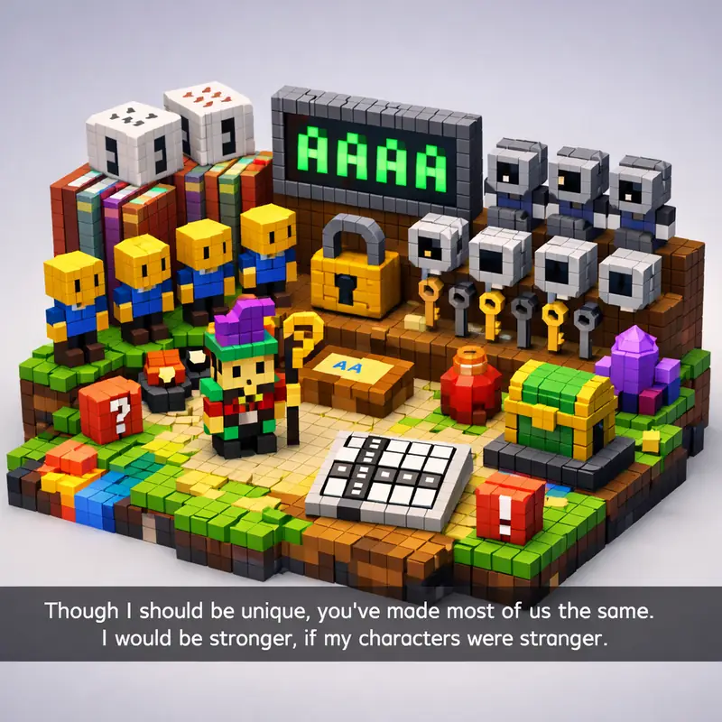 Though I should be unique, you've made most of us the same. I would be stronger, if my characters were stranger.
