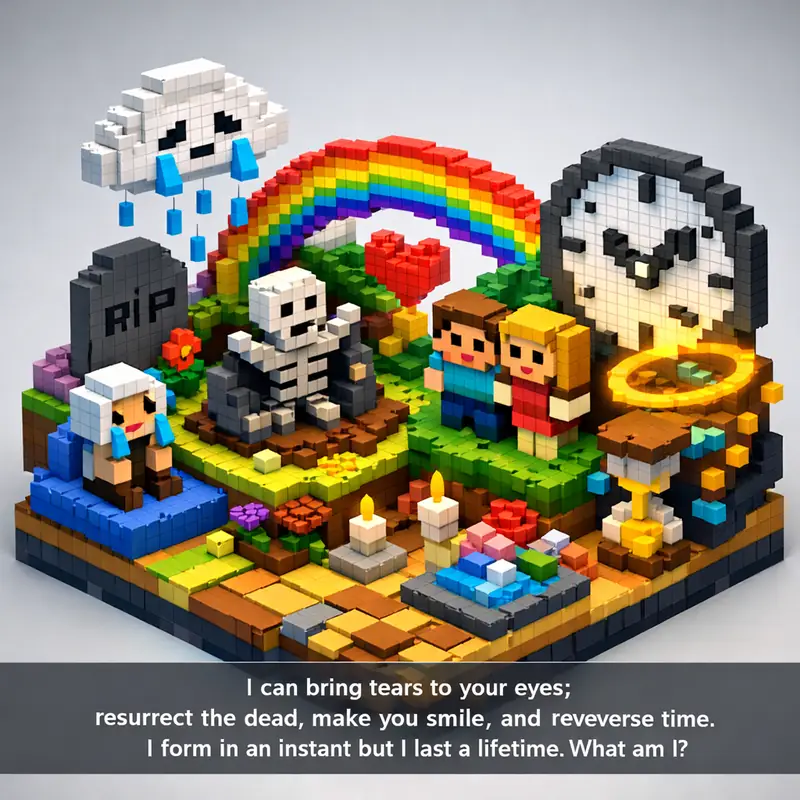 I can bring tears to your eyes; resurrect the dead, make you smile, and reverse time. I form in an instant but I last a lifetime. What am I?